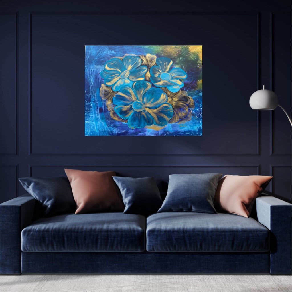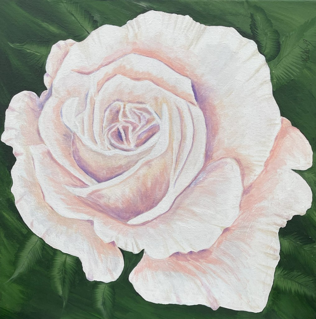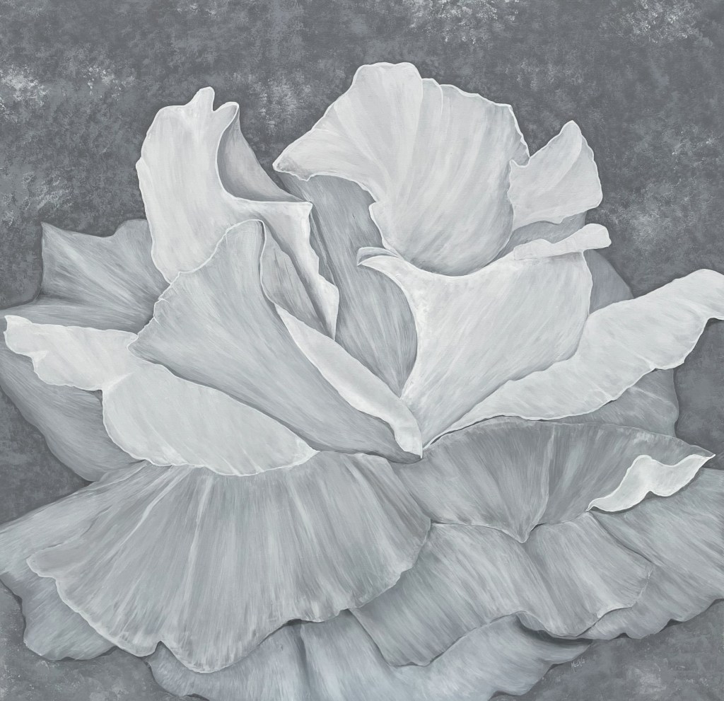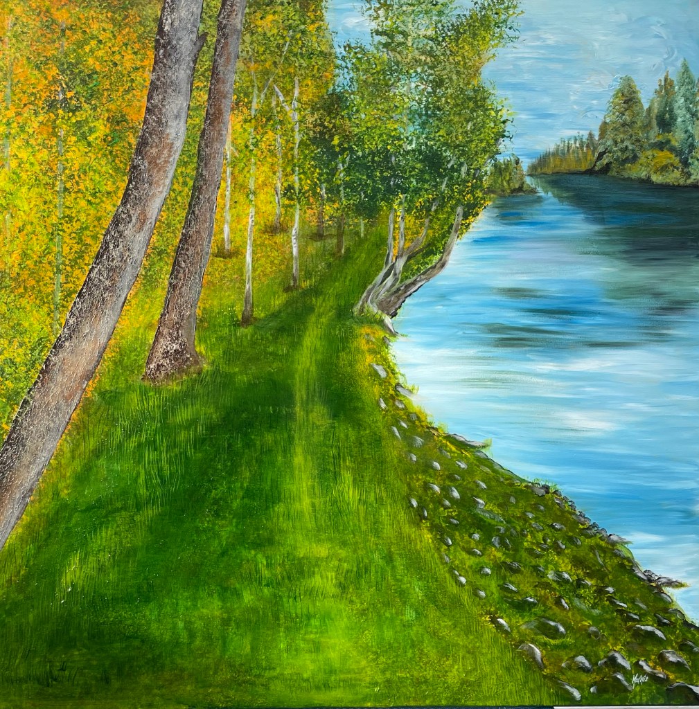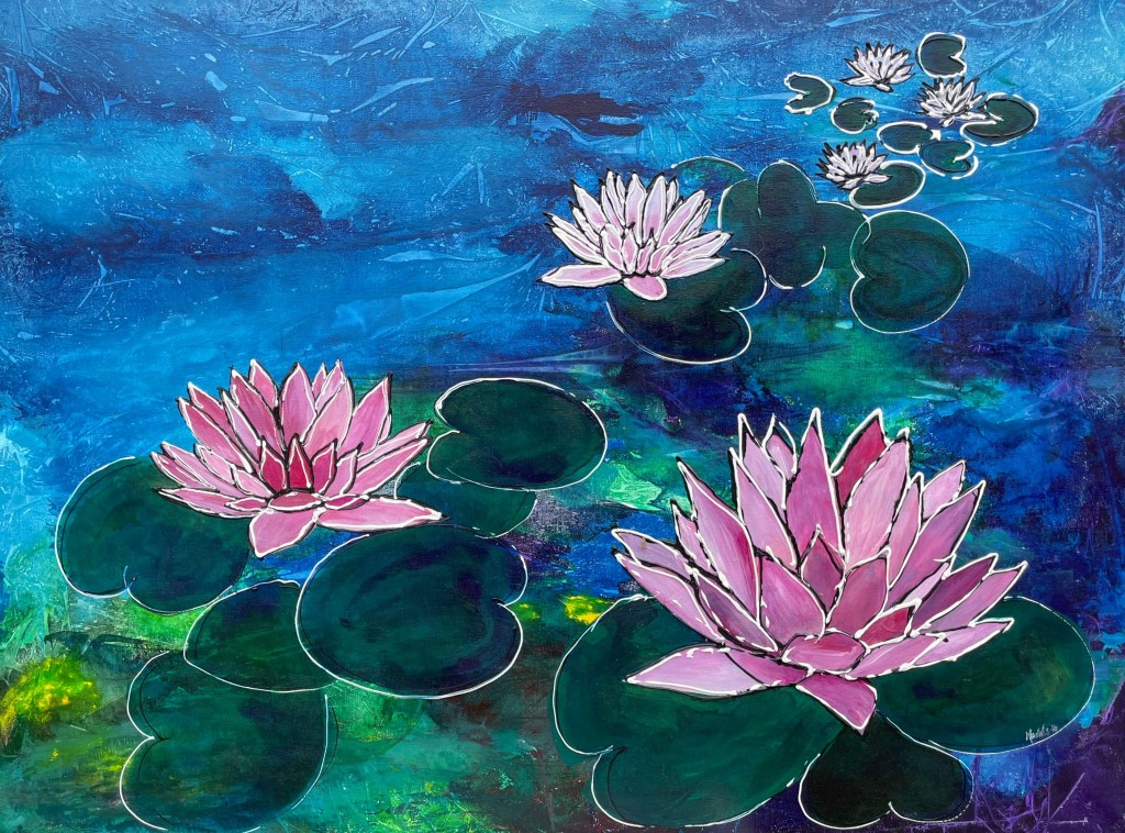 Nr 105, Rosa näckrosor, akrylmålning på canvas 90 x 70 cm, 6500 krNr 106, Palmer, akrylmålning på canvas 90 x 70 cm, 6570 krNr 107, Änglatrumpet, akrylmålning på canvas 70 x 90 cm, 6300 krNr 108, Björkar utmed å, akrylmålning på canvas 70 x 90 cm, 6300 krNr 109, Havsvik med granar, akrylmålning på canvas 70 x 90 cm, 6300 krNr 110, Lejon, akrylmålning på canvas 70 x 90 cm, 6300 krNr 111, Zebror, akrylmålning på canvas 90 x 70 cm, 6300 krNr 112, Giraffer, akrylmålning på canvas 70 x 100 cm, 7000 krNr 113, Vindruvor, akrylmålning på canvas 30 x 80 cm, 2400 krNr 114, Ros i gråskala, akrylmålning på canvas 100 x 100 cm, 10000 krNr 115, Pion i gråskala, akrylmålning på canvas 100 x 100 cm, 10000 krNr 116, Ros utslagen i gråskala, akrylmålning på canvas 100 x 100 cm, 10000 krNr 117, Kakaduor i djungeln, akrylmålning på canvas 100 x 100 cm, 10000 krNr 118, Skogen med å, akrylmålning på canvas 100 x 70 cm, 7000 krNr 119, Elefanter, akrylmålning på canvas 100 x 70 cm, 7000 krNr 120, Näckrosor vita, akrylmålning på canvas 110 x 70 cm, 7700 krNr 121, Blåa blommor, akrylmålning på canvas 90 x 70 cm, 6300 krNr 122, Abstrakt, akrylmålning på canvas 30 x 30 cm, såld. Nr 123, Abstrakt, akrylmålning på canvas 30 x 30 cm, 900 kr Nr 124, Abstrakt, akrylmålning på canvas 30 x 30 cm, 900 krNr 125, Vindruvor, akrylmålning på canvas 37 x 47 cm, 1800 krNr 126, Rosor, akvarellmålning inramad med yttermått 42 x 52 cm, 2200 krNr 127, Groda, akrylmålning på mdf 34 x 42 cm, 1500 krNr 128, Blå blommor på blå botten, akrylmålning på canvas 22 x 26 cm, 600 kr Nr 129, Blå blommor på grön botten, akrylmålning på canvas 22 x 26 cm, 600 krNr 130, Blå blommar, akrylmålning på canvas 30 x 30 cm, 900 krNr 131, Svanar, oljemålning på canvas 46 x 38 cm, 5300 krNr 132, Ros och hortensia, akvarellmålning inramad, yttermått med ram 32 x 42 cm, såldNr 133, Stad i nattljus, akrylmålning på canvas 50 x 50 cm, 2500 krNr 134, Blommor, akrylmålning på canvas 50 x 50 cm, 2500 krNr 135, Blommor, akrylmålning på canvas 54 x 64 cm, 3500 krNr 136, Sköldpadda hittar pärlor, akrylmålning på canvas 60 x 50 cm, 3500 krNr 137, Delfiner och krabbor, akrylmålning på canvas 60 x 50 cm, 3500 krNr 138, Leopard, global uppvärmning, akrylmålning på canvas 90 x 40 cm, 3600 krNr 139, Kvarglömd båt, akrylmålning på canvas 54 x 46 cm, 2500 krNr 140, Soldnedgång i öknen, akrylmålning på canvas 20 x 50 cm, 1000 krNr 141, Rosa ros, akrylmålning på canvas 40 x 40 cm, 1600 krNr 142, Fjällmotiv från Norge, akrylmålning på canvas 80 x 80 cm, 6400 krNr 143, Havet, akrylmålning på canvas 100 x 70 cm, 7000 krNr 144, Magnolia, oljemålning på canvas 80 x 80 cm, 6400 krNr 145, Vägen till kvarnen, akrylmålning på canvas 80 x 80 cm, 6400 kr. Vi letar efter den gamla kvarnen som ska finnas utmed ån.Nr 146, Nattlig vandring i skogen, akrylmålning på canvas 100 x 80 cm, 8000 kr. Abstrakt målning.Närbild från del av tavlan.Nr 147, Gyllene vägen till havet, akrylmålning på canvas 100 x 80 cm, 8000 kr. Semesterminne från Danmark.