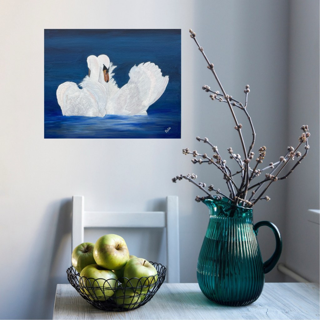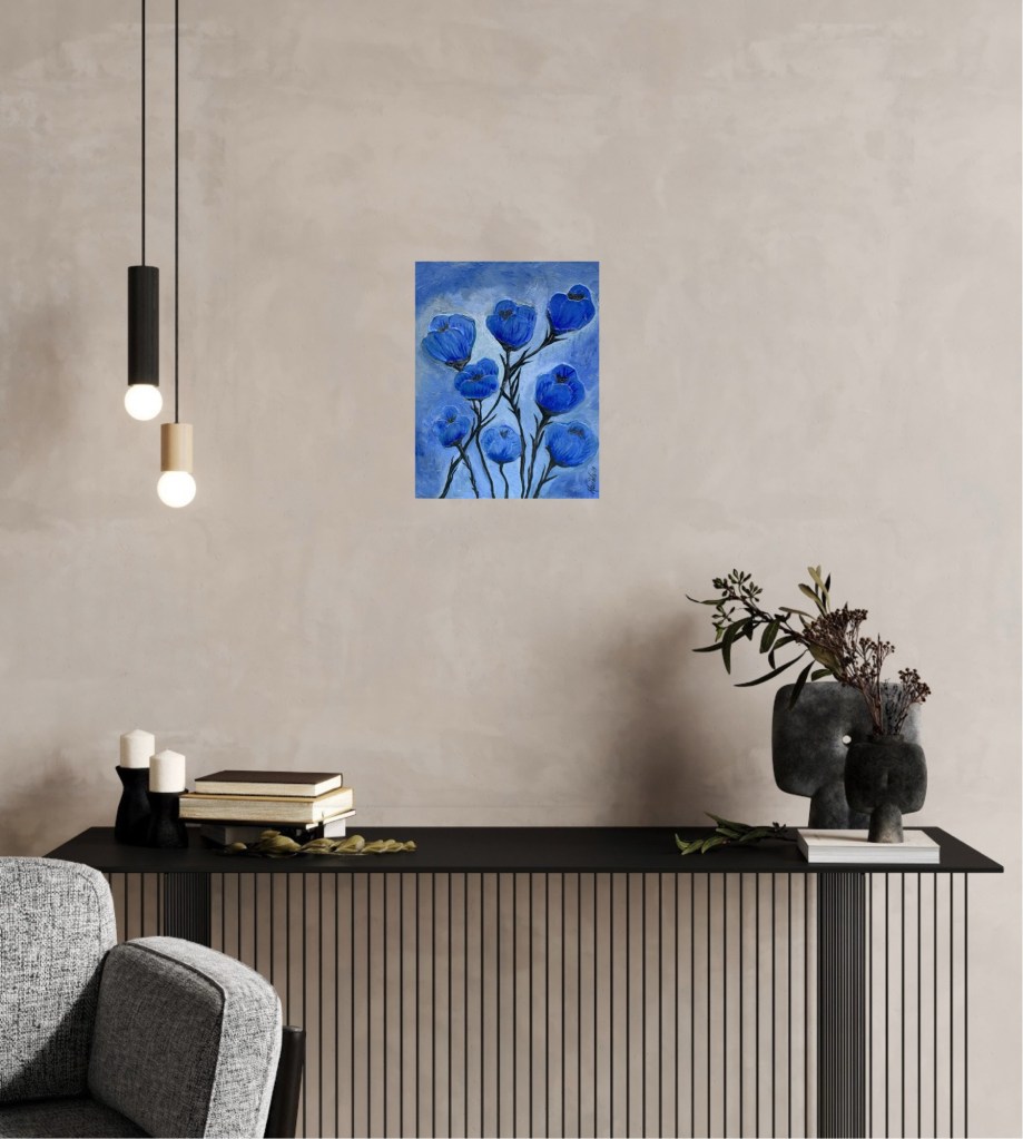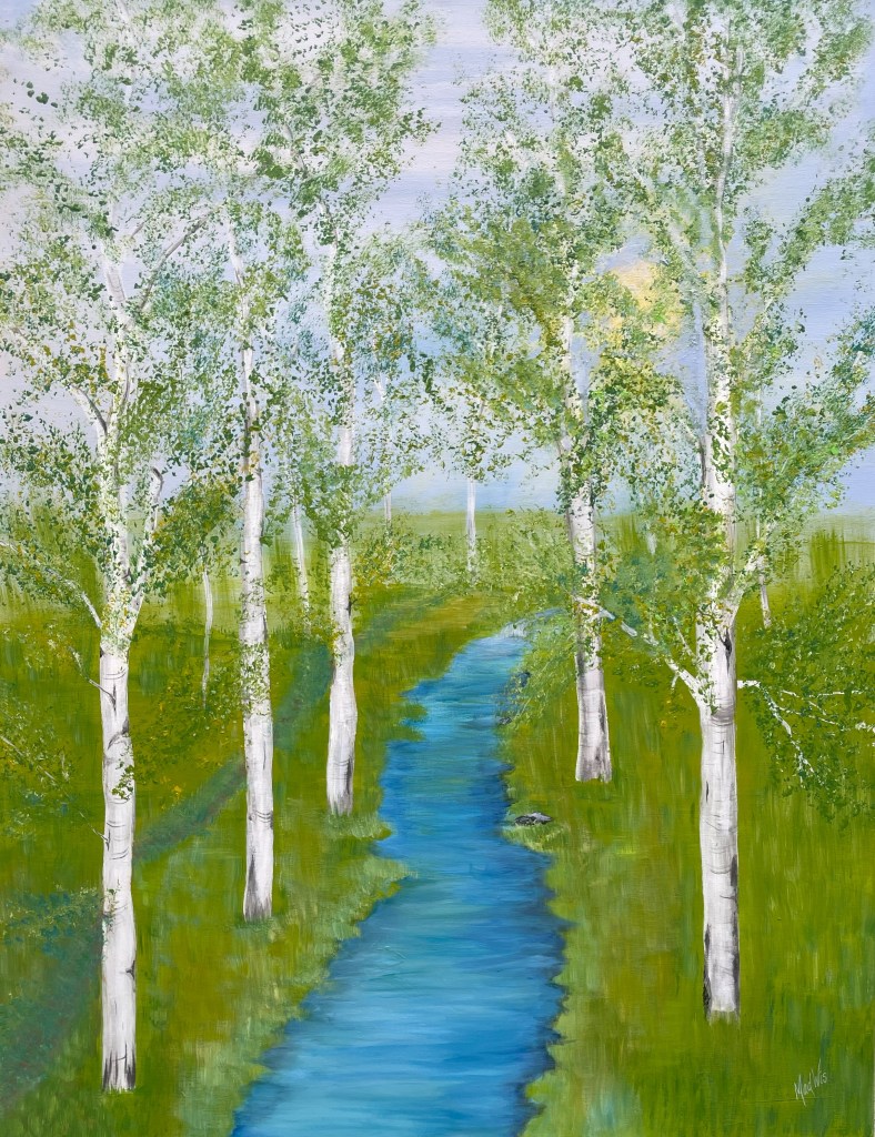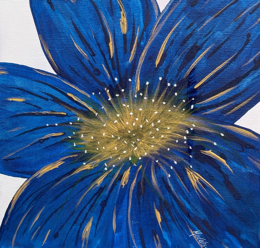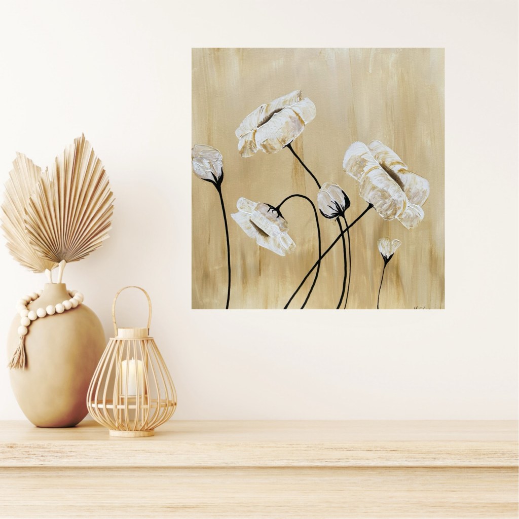 Nr 105, Rosa näckrosor, akrylmålning på canvas 90 x 70 cm, 6500 krNr 106, Palmer, akrylmålning på canvas 90 x 70 cm, 6570 krNr 107, Änglatrumpet, akrylmålning på canvas 70 x 90 cm, 6300 krNr 108, Björkar utmed å, akrylmålning på canvas 70 x 90 cm, 6300 krNr 109, Havsvik med granar, akrylmålning på canvas 70 x 90 cm, 6300 krNr 110, Lejon, akrylmålning på canvas 70 x 90 cm, 6300 krNr 111, Zebror, akrylmålning på canvas 90 x 70 cm, 6300 krNr 112, Giraffer, akrylmålning på canvas 70 x 100 cm, 7000 krNr 113, Vindruvor, akrylmålning på canvas 30 x 80 cm, 2400 krNr 114, Ros i gråskala, akrylmålning på canvas 100 x 100 cm, 10000 krNr 115, Pion i gråskala, akrylmålning på canvas 100 x 100 cm, 10000 krNr 116, Ros utslagen i gråskala, akrylmålning på canvas 100 x 100 cm, 10000 krNr 117, Kakaduor i djungeln, akrylmålning på canvas 100 x 100 cm, 10000 krNr 118, Skogen med å, akrylmålning på canvas 100 x 70 cm, 7000 krNr 119, Elefanter, akrylmålning på canvas 100 x 70 cm, 7000 krNr 120, Näckrosor vita, akrylmålning på canvas 110 x 70 cm, 7700 krNr 121, Blåa blommor, akrylmålning på canvas 90 x 70 cm, 6300 krNr 122, Abstrakt, akrylmålning på canvas 30 x 30 cm, såld. Nr 123, Abstrakt, akrylmålning på canvas 30 x 30 cm, 900 kr Nr 124, Abstrakt, akrylmålning på canvas 30 x 30 cm, 900 krNr 125, Vindruvor, akrylmålning på canvas 37 x 47 cm, 1800 krNr 126, Rosor, akvarellmålning inramad med yttermått 42 x 52 cm, 2200 krNr 127, Groda, akrylmålning på mdf 34 x 42 cm, 1500 krNr 128, Blå blommor på blå botten, akrylmålning på canvas 22 x 26 cm, 600 kr Nr 129, Blå blommor på grön botten, akrylmålning på canvas 22 x 26 cm, 600 krNr 130, Blå blommar, akrylmålning på canvas 30 x 30 cm, 900 krNr 131, Svanar, oljemålning på canvas 46 x 38 cm, 5300 krNr 132, Ros och hortensia, akvarellmålning inramad, yttermått med ram 32 x 42 cm, såldNr 133, Stad i nattljus, akrylmålning på canvas 50 x 50 cm, 2500 krNr 134, Blommor, akrylmålning på canvas 50 x 50 cm, 2500 krNr 135, Blommor, akrylmålning på canvas 54 x 64 cm, 3500 krNr 136, Sköldpadda hittar pärlor, akrylmålning på canvas 60 x 50 cm, 3500 krNr 137, Delfiner och krabbor, akrylmålning på canvas 60 x 50 cm, 3500 krNr 138, Leopard, global uppvärmning, akrylmålning på canvas 90 x 40 cm, 3600 krNr 139, Kvarglömd båt, akrylmålning på canvas 54 x 46 cm, 2500 krNr 140, Soldnedgång i öknen, akrylmålning på canvas 20 x 50 cm, 1000 krNr 141, Rosa ros, akrylmålning på canvas 40 x 40 cm, 1600 krNr 142, Fjällmotiv från Norge, akrylmålning på canvas 80 x 80 cm, 6400 krNr 143, Havet, akrylmålning på canvas 100 x 70 cm, 7000 krNr 144, Magnolia, oljemålning på canvas 80 x 80 cm, 6400 krNr 145, Vägen till kvarnen, akrylmålning på canvas 80 x 80 cm, 6400 kr. Vi letar efter den gamla kvarnen som ska finnas utmed ån.Nr 146, Nattlig vandring i skogen, akrylmålning på canvas 100 x 80 cm, 8000 kr. Abstrakt målning.Närbild från del av tavlan.Nr 147, Gyllene vägen till havet, akrylmålning på canvas 100 x 80 cm, 8000 kr. Semesterminne från Danmark.