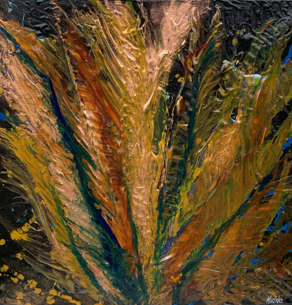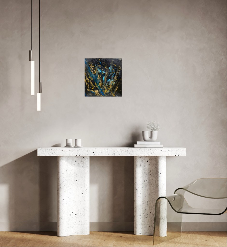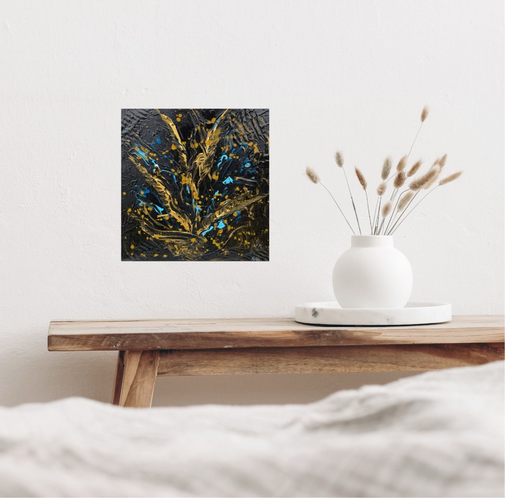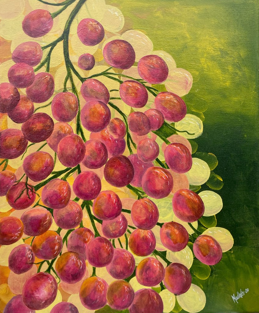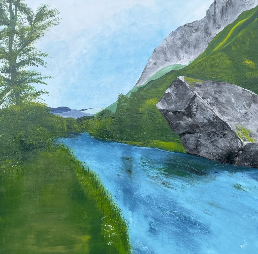 Nr 105, Rosa näckrosor, akrylmålning på canvas 90 x 70 cm, 6500 krNr 106, Palmer, akrylmålning på canvas 90 x 70 cm, 6570 krNr 107, Änglatrumpet, akrylmålning på canvas 70 x 90 cm, 6300 krNr 108, Björkar utmed å, akrylmålning på canvas 70 x 90 cm, 6300 krNr 109, Havsvik med granar, akrylmålning på canvas 70 x 90 cm, 6300 krNr 110, Lejon, akrylmålning på canvas 70 x 90 cm, 6300 krNr 111, Zebror, akrylmålning på canvas 90 x 70 cm, 6300 krNr 112, Giraffer, akrylmålning på canvas 70 x 100 cm, 7000 krNr 113, Vindruvor, akrylmålning på canvas 30 x 80 cm, 2400 krNr 114, Ros i gråskala, akrylmålning på canvas 100 x 100 cm, 10000 krNr 115, Pion i gråskala, akrylmålning på canvas 100 x 100 cm, 10000 krNr 116, Ros utslagen i gråskala, akrylmålning på canvas 100 x 100 cm, 10000 krNr 117, Kakaduor i djungeln, akrylmålning på canvas 100 x 100 cm, 10000 krNr 118, Skogen med å, akrylmålning på canvas 100 x 70 cm, 7000 krNr 119, Elefanter, akrylmålning på canvas 100 x 70 cm, 7000 krNr 120, Näckrosor vita, akrylmålning på canvas 110 x 70 cm, 7700 krNr 121, Blåa blommor, akrylmålning på canvas 90 x 70 cm, 6300 krNr 122, Abstrakt, akrylmålning på canvas 30 x 30 cm, såld. Nr 123, Abstrakt, akrylmålning på canvas 30 x 30 cm, 900 kr Nr 124, Abstrakt, akrylmålning på canvas 30 x 30 cm, 900 krNr 125, Vindruvor, akrylmålning på canvas 37 x 47 cm, 1800 krNr 126, Rosor, akvarellmålning inramad med yttermått 42 x 52 cm, 2200 krNr 127, Groda, akrylmålning på mdf 34 x 42 cm, 1500 krNr 128, Blå blommor på blå botten, akrylmålning på canvas 22 x 26 cm, 600 kr Nr 129, Blå blommor på grön botten, akrylmålning på canvas 22 x 26 cm, 600 krNr 130, Blå blommar, akrylmålning på canvas 30 x 30 cm, 900 krNr 131, Svanar, oljemålning på canvas 46 x 38 cm, 5300 krNr 132, Ros och hortensia, akvarellmålning inramad, yttermått med ram 32 x 42 cm, såldNr 133, Stad i nattljus, akrylmålning på canvas 50 x 50 cm, 2500 krNr 134, Blommor, akrylmålning på canvas 50 x 50 cm, 2500 krNr 135, Blommor, akrylmålning på canvas 54 x 64 cm, 3500 krNr 136, Sköldpadda hittar pärlor, akrylmålning på canvas 60 x 50 cm, 3500 krNr 137, Delfiner och krabbor, akrylmålning på canvas 60 x 50 cm, 3500 krNr 138, Leopard, global uppvärmning, akrylmålning på canvas 90 x 40 cm, 3600 krNr 139, Kvarglömd båt, akrylmålning på canvas 54 x 46 cm, 2500 krNr 140, Soldnedgång i öknen, akrylmålning på canvas 20 x 50 cm, 1000 krNr 141, Rosa ros, akrylmålning på canvas 40 x 40 cm, 1600 krNr 142, Fjällmotiv från Norge, akrylmålning på canvas 80 x 80 cm, 6400 krNr 143, Havet, akrylmålning på canvas 100 x 70 cm, 7000 krNr 144, Magnolia, oljemålning på canvas 80 x 80 cm, 6400 krNr 145, Vägen till kvarnen, akrylmålning på canvas 80 x 80 cm, 6400 kr. Vi letar efter den gamla kvarnen som ska finnas utmed ån.Nr 146, Nattlig vandring i skogen, akrylmålning på canvas 100 x 80 cm, 8000 kr. Abstrakt målning.Närbild från del av tavlan.Nr 147, Gyllene vägen till havet, akrylmålning på canvas 100 x 80 cm, 8000 kr. Semesterminne från Danmark.