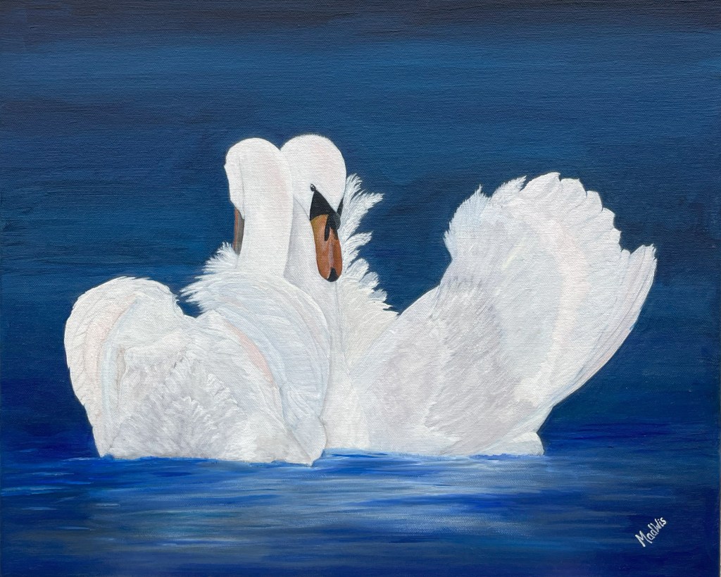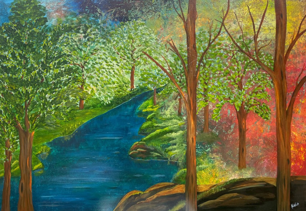 Originalmålningar i akryl, olja och akvarell. Beskrivning av målningar finns i bildens nederkant. Storleken på målningarna anges (bredd x höjd) i cm. Målningarna kan ses i ateljén, besök efter överenskommelse.