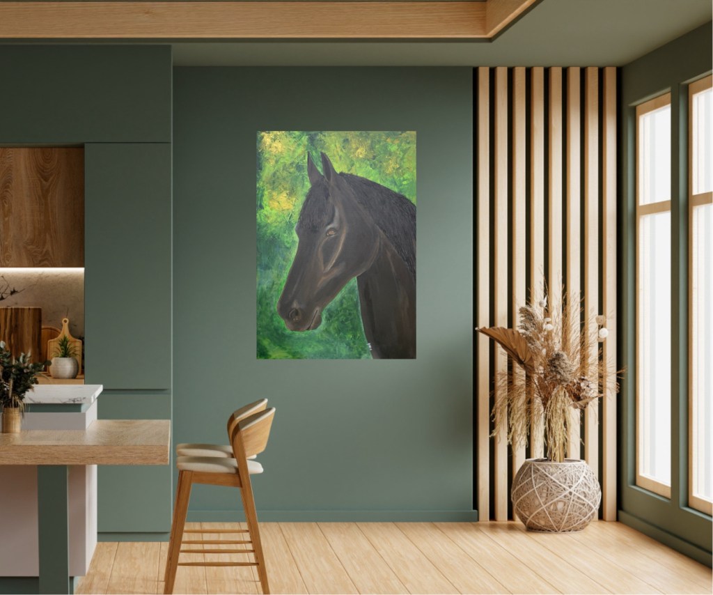 Nr 104, Tabe frieserhäst, akrylmålning på canvas 70 x 100 cm, 7000 kr