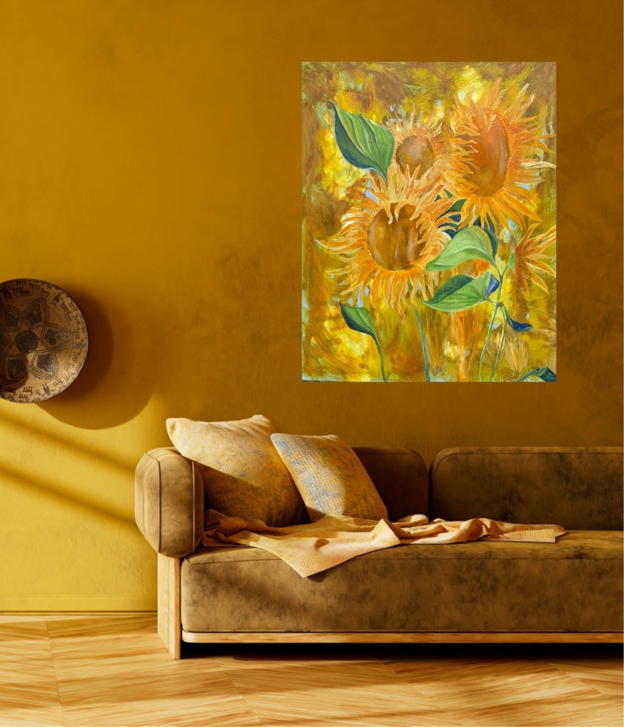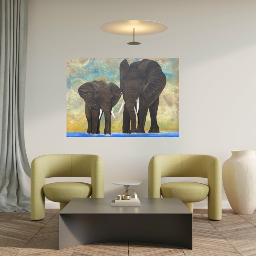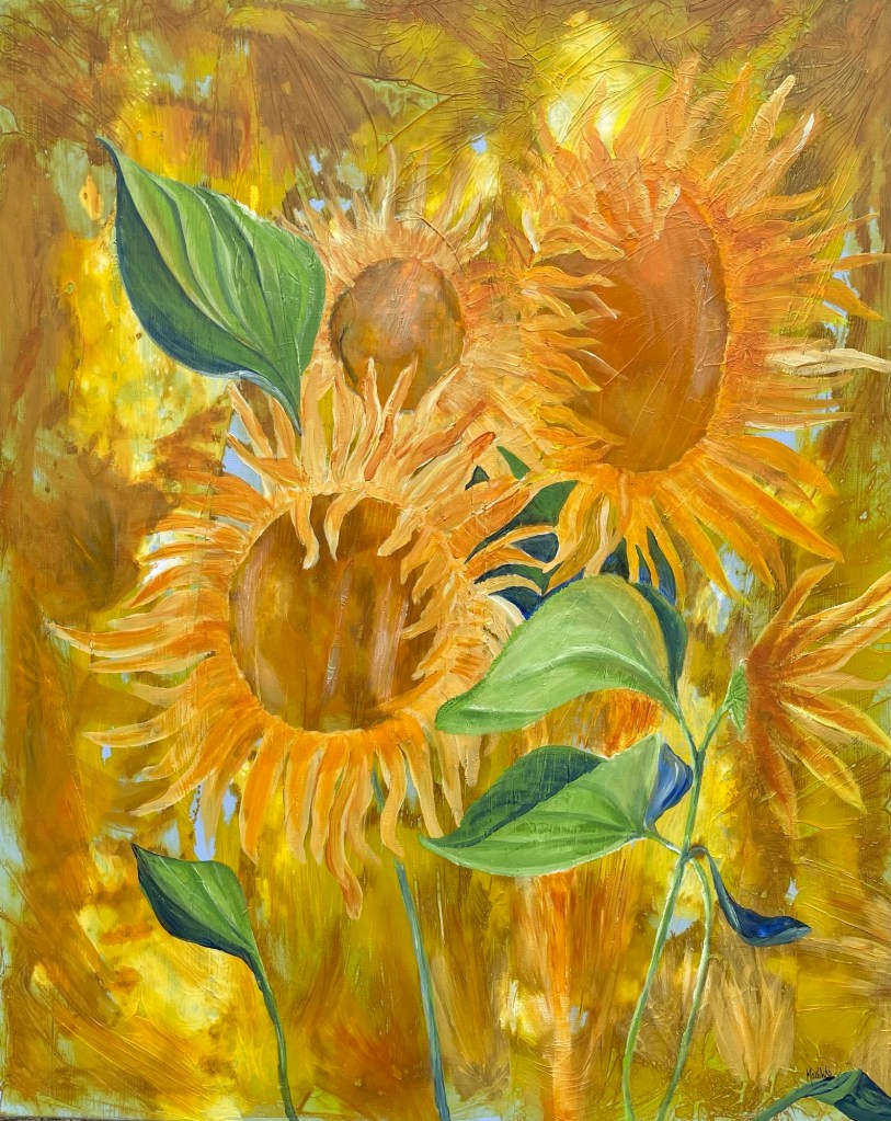 Nr 100, Elefant, akrylmålning på canvas 50 x 70 cm privatNr 148, Solrosor, sommarens kraft i tydliga penseldrag. Akrylmålning på canvas 80 x 100 cm, 8000 kr.Nr 101, Elefantfamilj, akrylmålning på canvas 150 x 100 cm, 15000 krNr 102, Zebror, akrylmålning på canvas 150 x 100 cm, såld